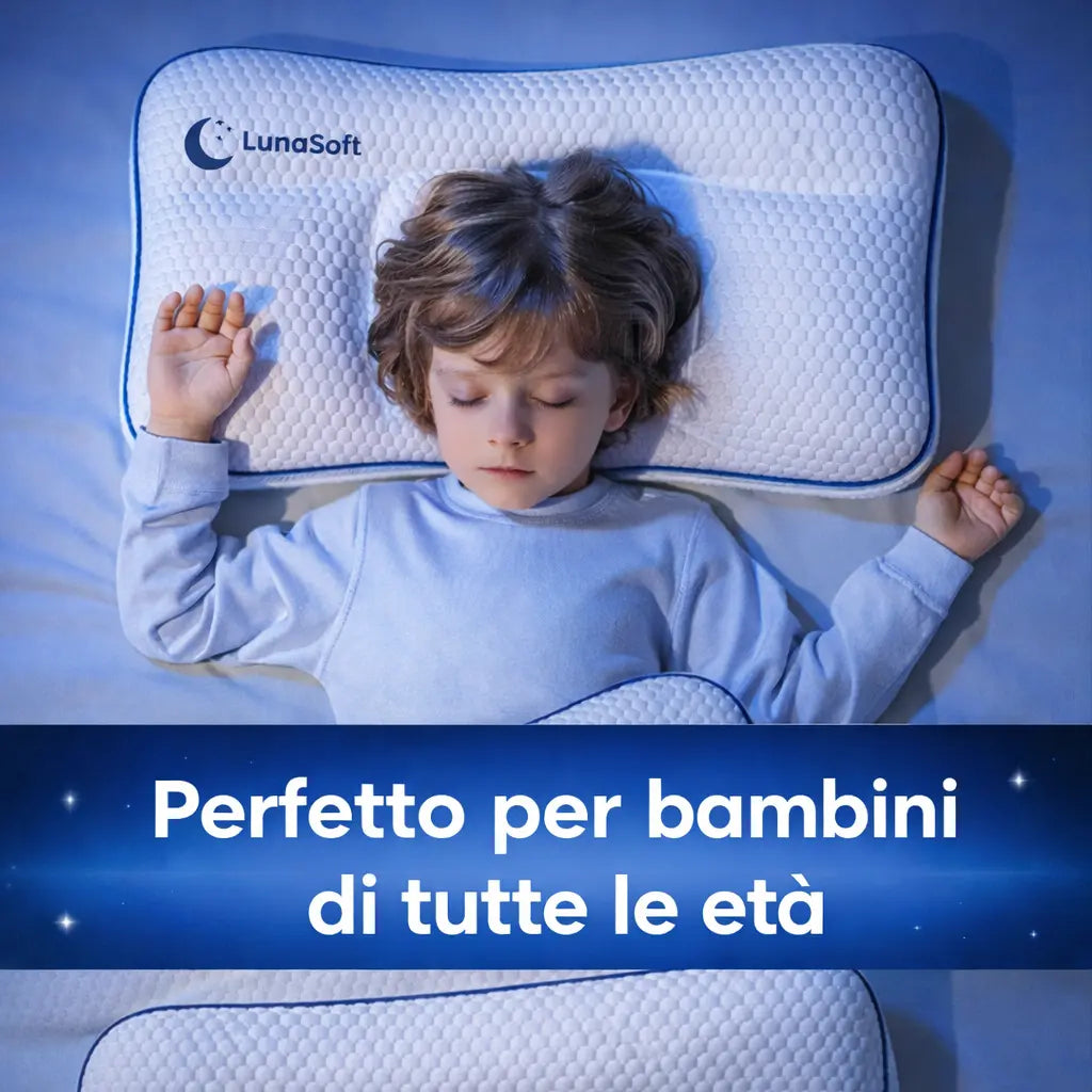Un cuscino ergonomico come LunaSoft™ può contribuire a favorire una posizione più naturale durante il riposo, accompagnando il bambino nelle sue fasi di sviluppo.